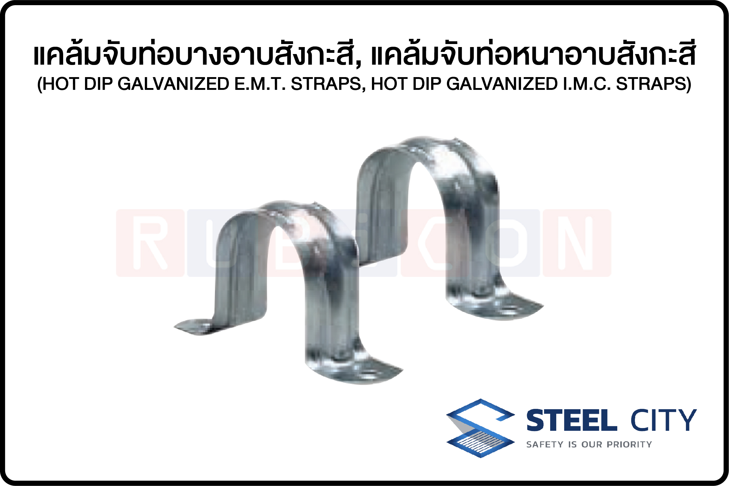 STEEL CITY-แคล้มจับท่อบางอาบสังกะสี, แคล้มจับท่อหนาอาบสังกะสี (HOT DIP GALVANIZED E.M.T. STRAPS, HOT DIP GALVANIZED I.M.C. STRAPS)