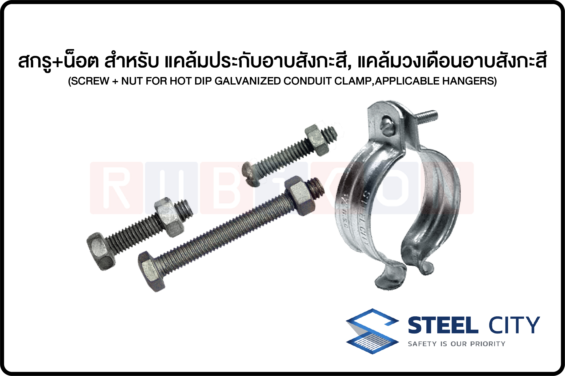 STEEL CITY-สกรูู+น็อต สำหรับ แคล้มประกับอาบสังกะสี, แคล้มวงเดือนอาบสังกะสี (SCREW + NUT FOR HOT DIP GALVANIZED CONDUIT CLAMP,APPLICABLE HANGERS)