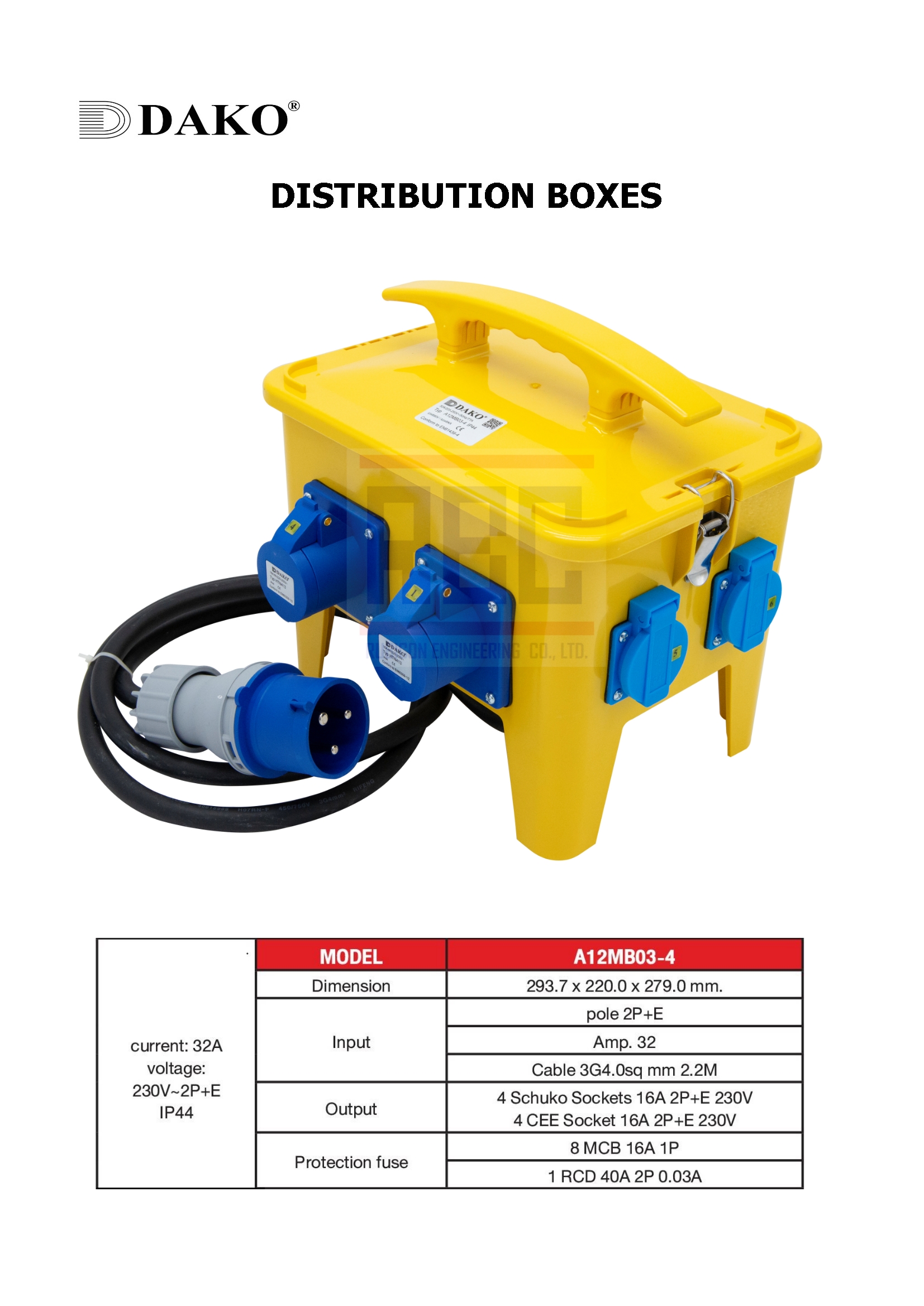 "DAKO PLUG" A12MB03-4 กล่องปลั๊กกระจายไฟ 2P+E 16A 230V IP44 (ชุดปลั๊ก IP44)