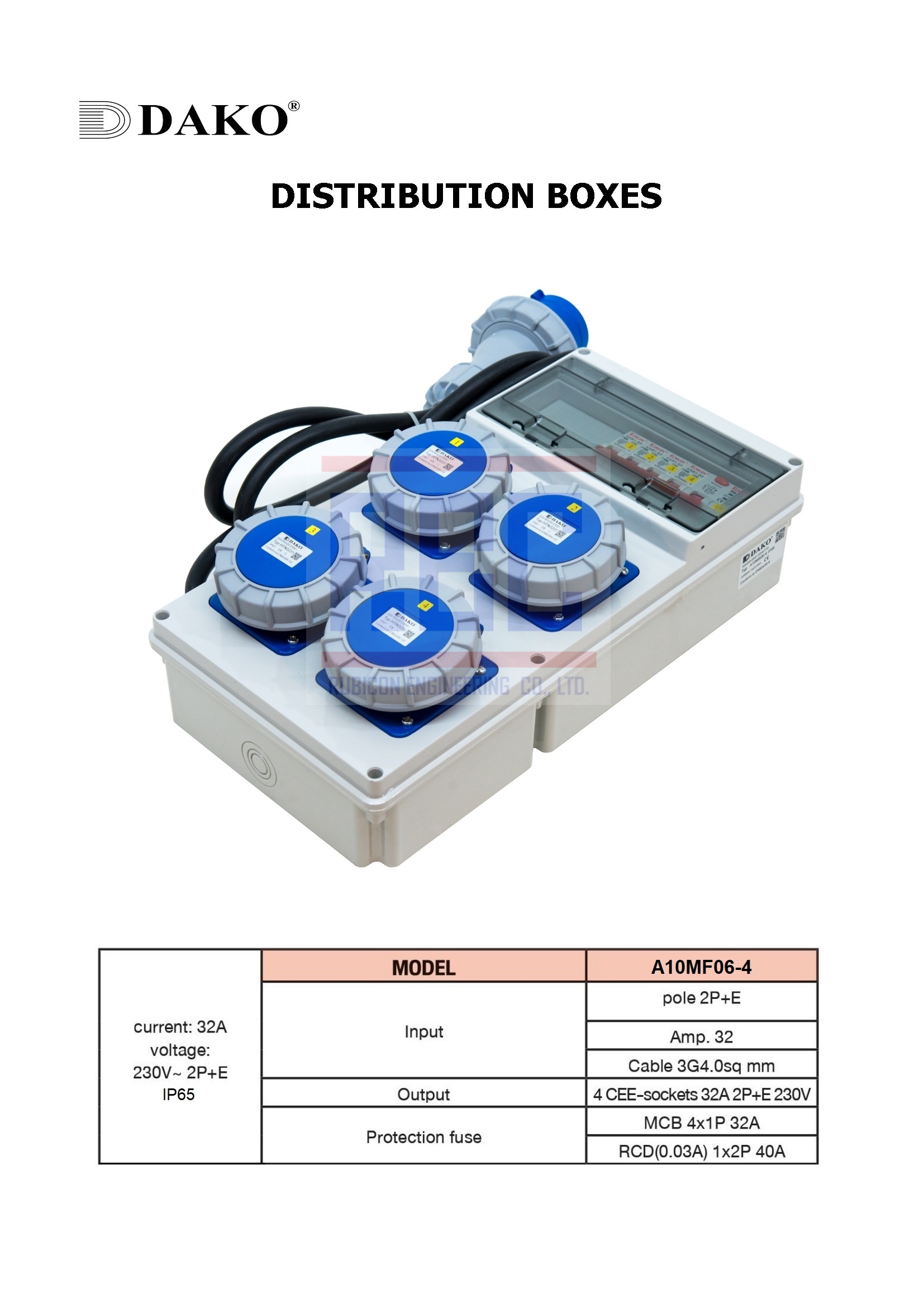 ปลั๊กเพาเวอร์ DAKO ชุดปลั๊กพาวเวอร์สำเร็จรูป ชุดกล่องปลั๊กเพาเวอร์ ชุดปลั๊กเพาเวอร์สำเร็จรูปพร้อมเบรคเกอร์ Power plug DAKO ปลั๊กโรงงาน ปลั๊กโรงงานสำเร็จรูป ชุดปลั๊กโรงงานพร้อมเบรคเกอร์ กล่องปลั๊กกระจายไฟพร้อมเบรคเกอร์ ปลั๊กพาวเวอร์ ชุดปลั๊กกระจายไฟสำเร็จรูป ชุดปลั๊กตัวเมียพร้อมเบรคเกอร์ ปลั๊กตัวเมียพร้อมเบรคเกอร์ ปลั๊กสนาม กล่องกระจายไฟ Distribution Boxes กล่องปลั๊กกระจายไฟ IP55 A10MF06-4