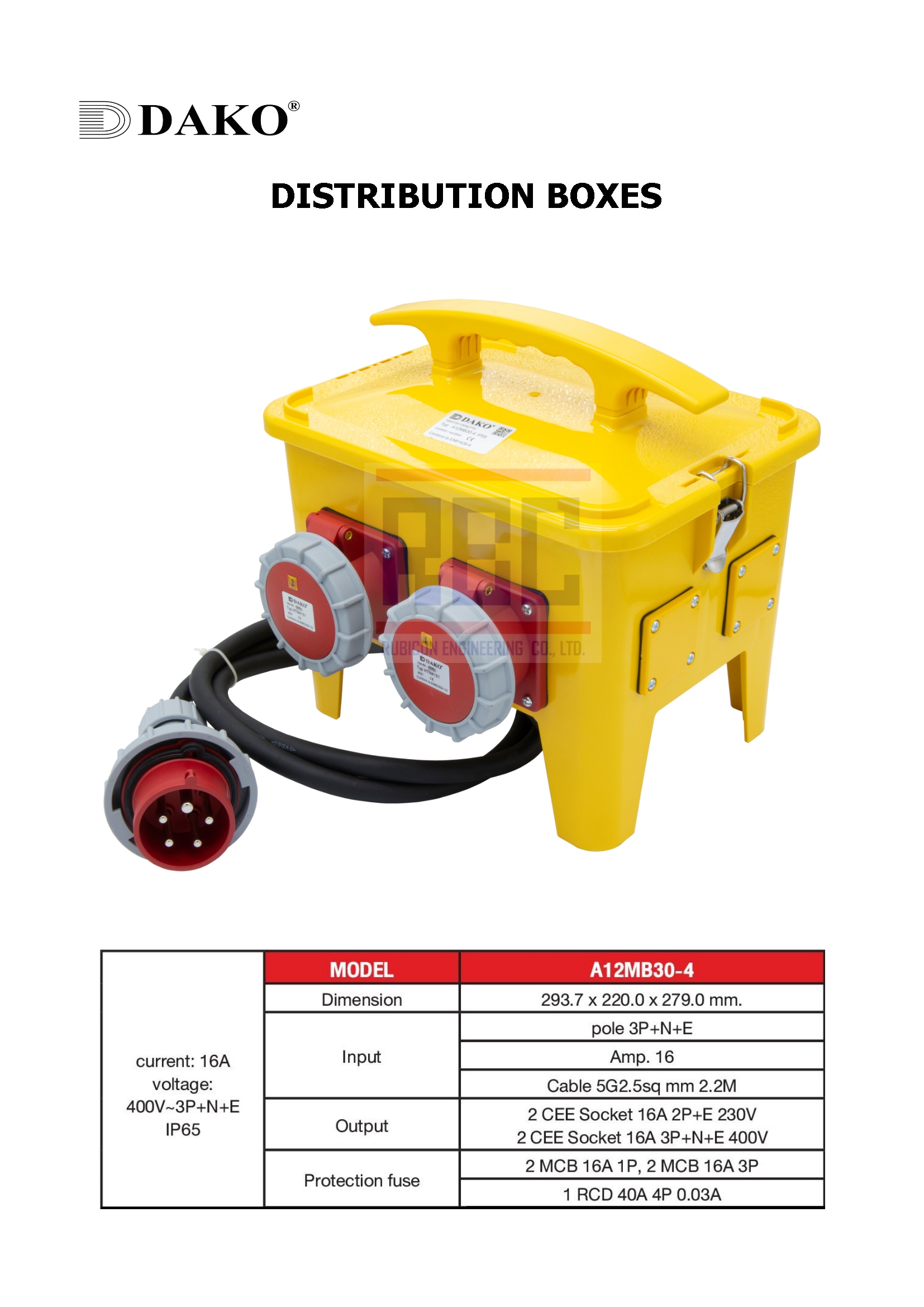ปลั๊กเพาเวอร์ DAKO ชุดปลั๊กพาวเวอร์สำเร็จรูป ชุดกล่องปลั๊กเพาเวอร์ ชุดปลั๊กเพาเวอร์สำเร็จรูปพร้อมเบรคเกอร์ Power plug DAKO ปลั๊กโรงงาน ปลั๊กโรงงานสำเร็จรูป ชุดปลั๊กโรงงานพร้อมเบรคเกอร์ กล่องปลั๊กกระจายไฟพร้อมเบรคเกอร์ ปลั๊กพาวเวอร์ กล่องปลั๊กกระจายไฟ IP65 ชุดปลั๊กตัวเมียพร้อมเบรคเกอร์ ปลั๊กตัวเมียพร้อมเบรคเกอร์ ปลั๊กสนาม กล่องกระจายไฟ Distribution Boxes A12MB30-4