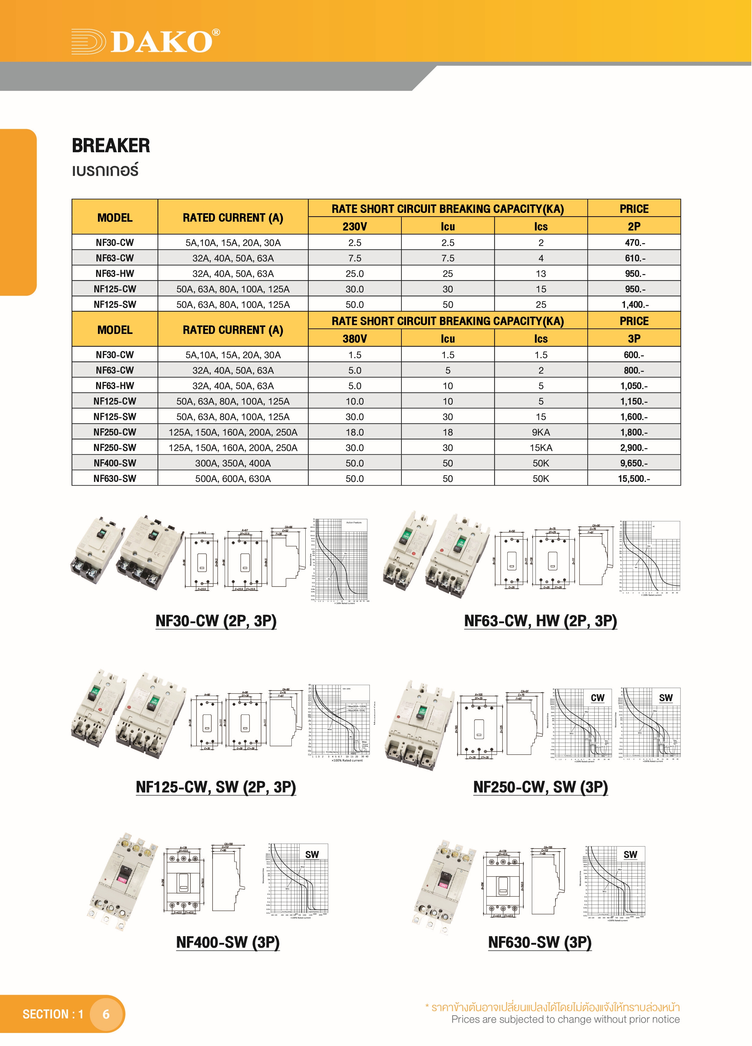 "DAKO" NF125-SW-2P เบรกเกอร์ 2P ( BREAKER )