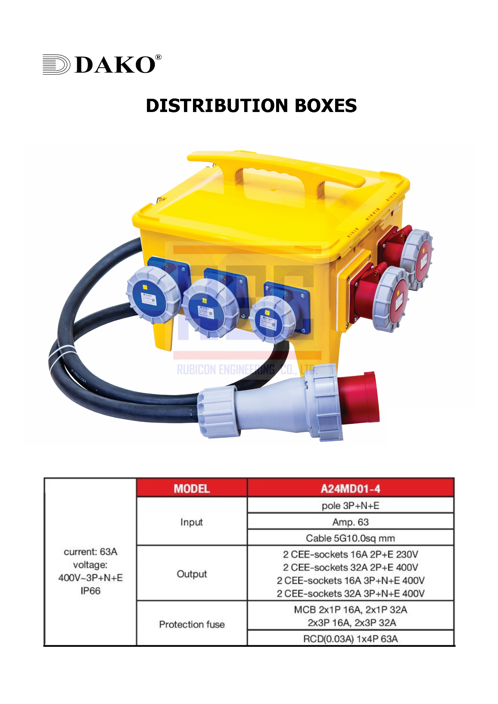 ปลั๊กเพาเวอร์ DAKO ชุดปลั๊กพาวเวอร์สำเร็จรูป ชุดกล่องปลั๊กเพาเวอร์ ชุดปลั๊กเพาเวอร์สำเร็จรูปพร้อมเบรคเกอร์ Power plug DAKO ปลั๊กโรงงาน ปลั๊กโรงงานสำเร็จรูป ชุดปลั๊กโรงงานพร้อมเบรคเกอร์ กล่องปลั๊กกระจายไฟพร้อมเบรคเกอร์ ปลั๊กพาวเวอร์ กล่องปลั๊กกระจายไฟ IP65 ชุดปลั๊กตัวเมียพร้อมเบรคเกอร์ ปลั๊กตัวเมียพร้อมเบรคเกอร์ ปลั๊กสนาม กล่องกระจายไฟ Distribution Boxes A24MD01-4