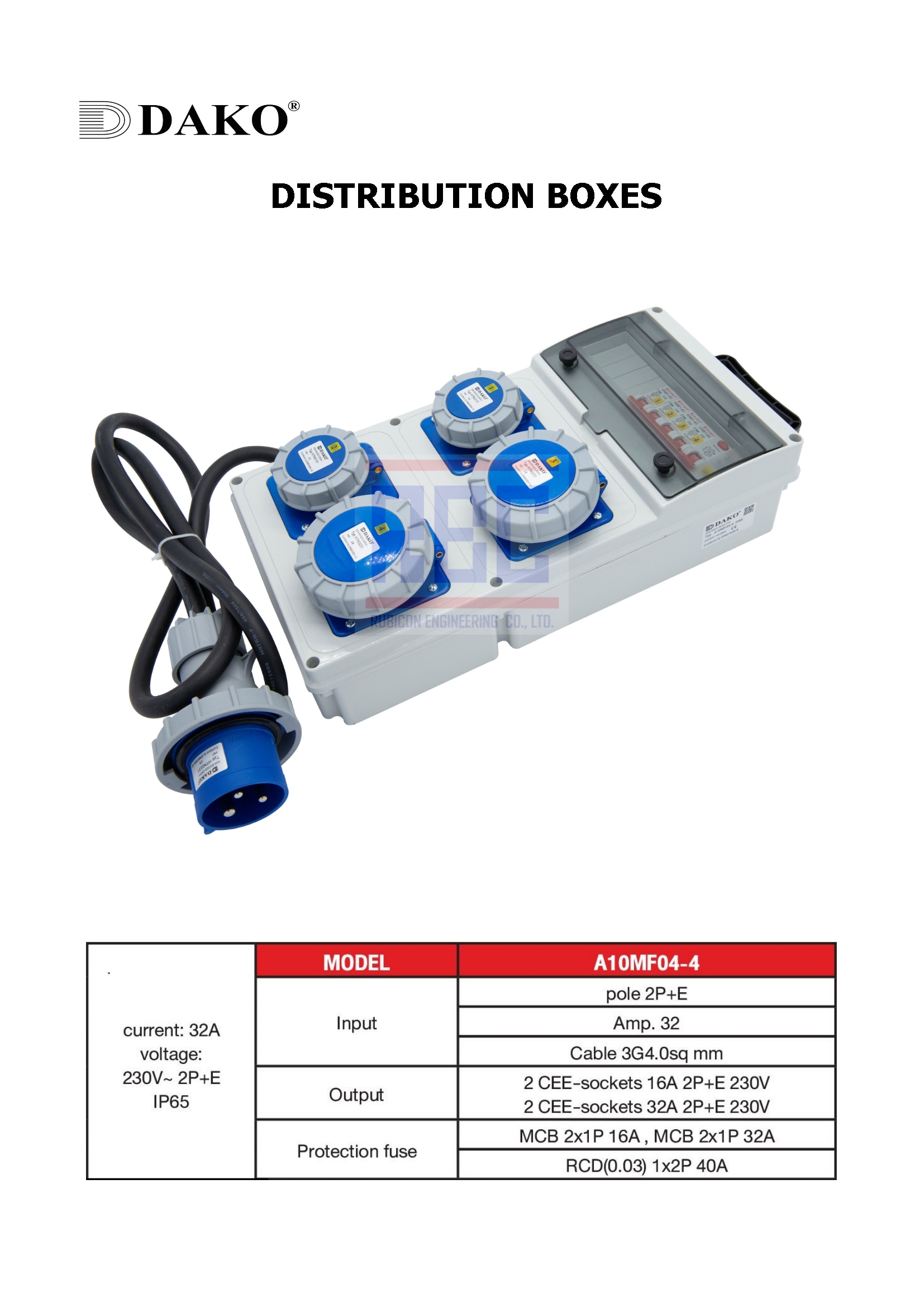 ปลั๊กเพาเวอร์ DAKO ชุดปลั๊กพาวเวอร์สำเร็จรูป ชุดกล่องปลั๊กเพาเวอร์ ชุดปลั๊กเพาเวอร์สำเร็จรูปพร้อมเบรคเกอร์ Power plug DAKO ปลั๊กโรงงาน ปลั๊กโรงงานสำเร็จรูป ชุดปลั๊กโรงงานพร้อมเบรคเกอร์ กล่องปลั๊กกระจายไฟพร้อมเบรคเกอร์ ปลั๊กพาวเวอร์ กล่องปลั๊กกระจายไฟ IP65 ชุดปลั๊กตัวเมียพร้อมเบรคเกอร์ ปลั๊กตัวเมียพร้อมเบรคเกอร์ ปลั๊กสนาม กล่องกระจายไฟ Distribution Boxes A10MF04-4